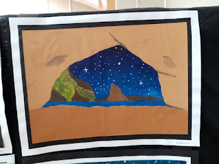 This next little mug rug was inspired by Japanese Sashiko - and she found a free pattern online that she traced out.